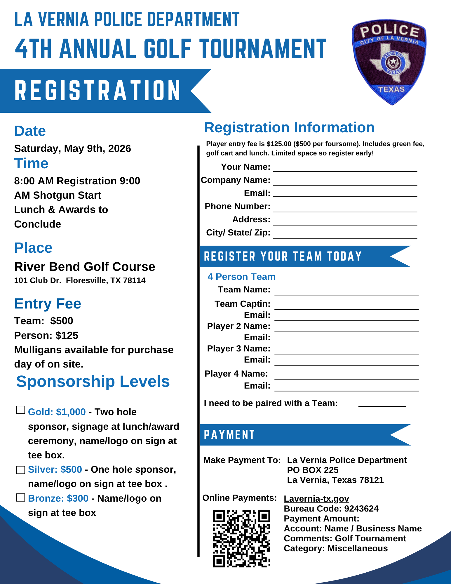 A: Emergencies, dial 911. To report a crime that does not require an emergency response, please contact (830) 393-2535. For general information and/or business related questions, please contact (830) 779-4541 x1.